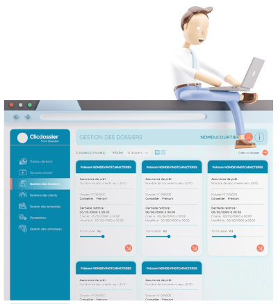 Parfait assistant du courtier, ClicDossier permet de permet de prendre en charge de manière automatique les tâches les plus laborieuses de la création d'un dossier de courtage :
